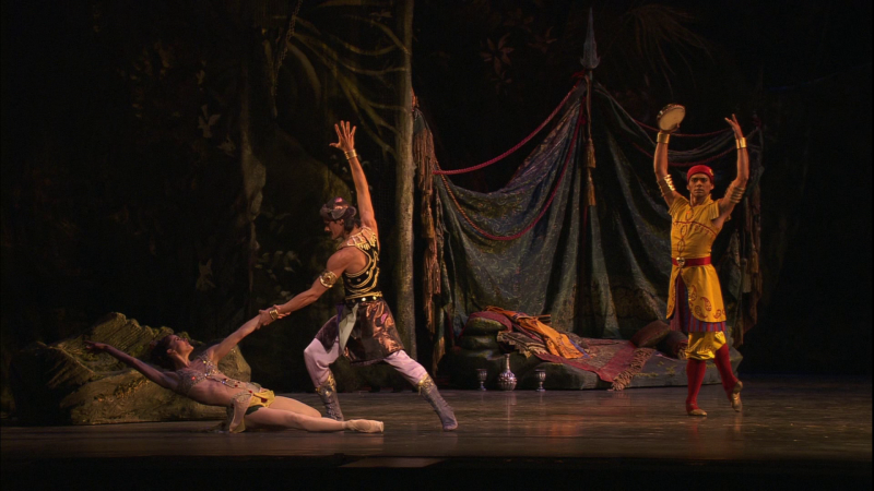 Darcey Bussell as Sylvia is sufficiently beautiful to make all this seem plausible. Any man she would fall for would have to be at least be as handsome as a god, and who is more handsome than Bolles? Thiago Soares as Orion exudes aggression with his scary eyes, odd nose, and twisted smirk. The choreography is completely satisfying. So the dancing of this wonderful cast and the much-admired Delibes score (well-played here, of course) make this show entertaining despite the simplicity of the libretto.